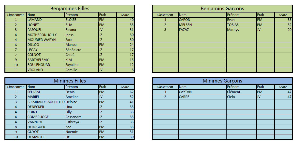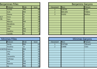 Voici les photos et résultats de la première rencontre d’Escalade effectuée sur le mur du Lycée Guynemer. Elle a réuni les collèges Jean Zay, Paul Machy et Jules Verne ainsi que des élèves des lycées Guynemer, Guy Debeyre et Angellier. Une rencontre qui s’est passée dans la joie et la bonne humeur avec le plaisir de pouvoir partager la grimpe en Escalade.
